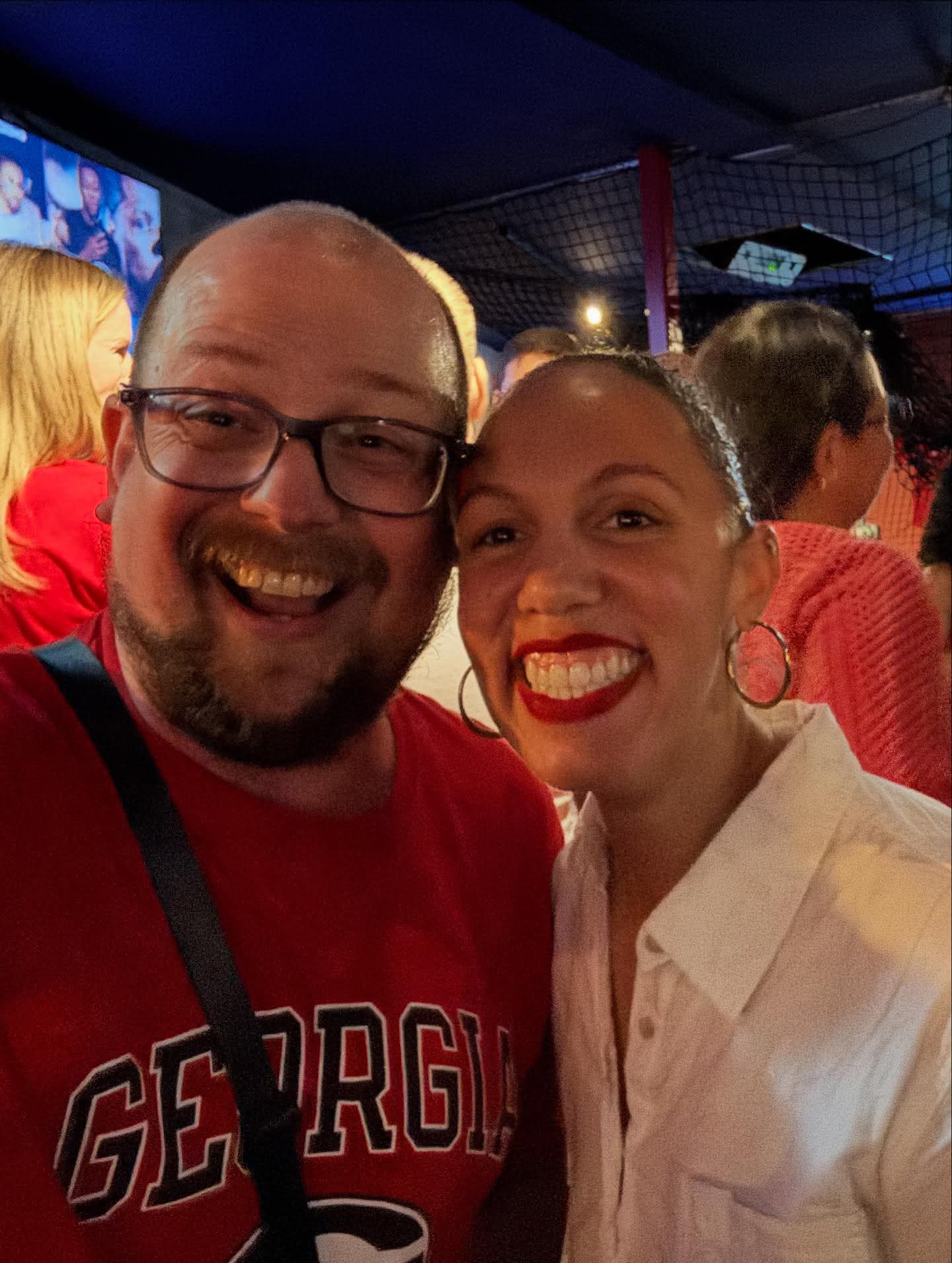 Just Dr. Vanessa Gonlin and some Dawgs loving life in the UK! Pic 1: Sociology faculty member Vanessa Gonlin and Performance Studies graduate student Alexis Lygoumenos at London Dawgs UGA game watching networking event. Location: London, UK Pic 2: Sociology faculty member Vanessa Gonlin and Journalism faculty member Kyser Lough at London Dawgs UGA game watching networking event. Location: London, UK Pics 3-5: Sociology faculty member Vanessa Gonlin and UGA at Oxford students enjoying class outdoors. Location: Oxford University, Oxford, UK (London Dawgs is the London, UK chapter of the UGA Alumni Association.) Gonlin Oxford